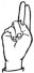 На ћирилици написано БОГИЊА ГОШИЋ састоји се из 11 слова [?]. Исписано ћириличном једноручном азбуком за глувонеме: